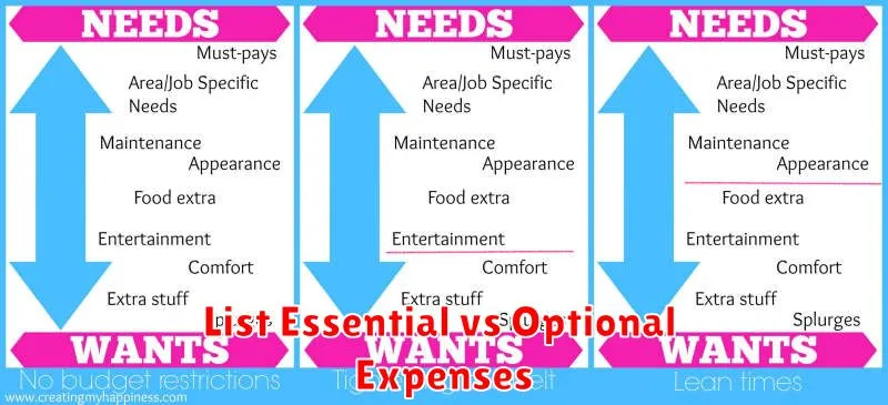 List Essential vs Optional Expenses